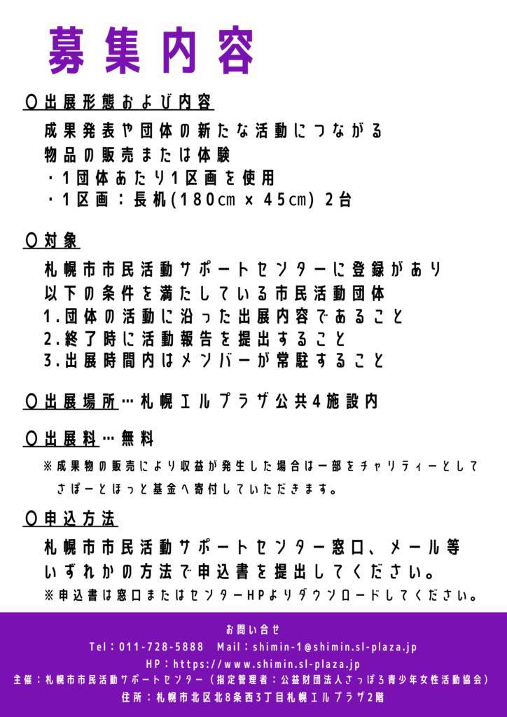 詳細は市民活動サポートセンターまでお問い合せください😊!