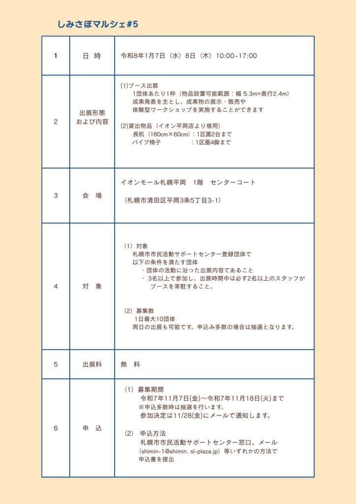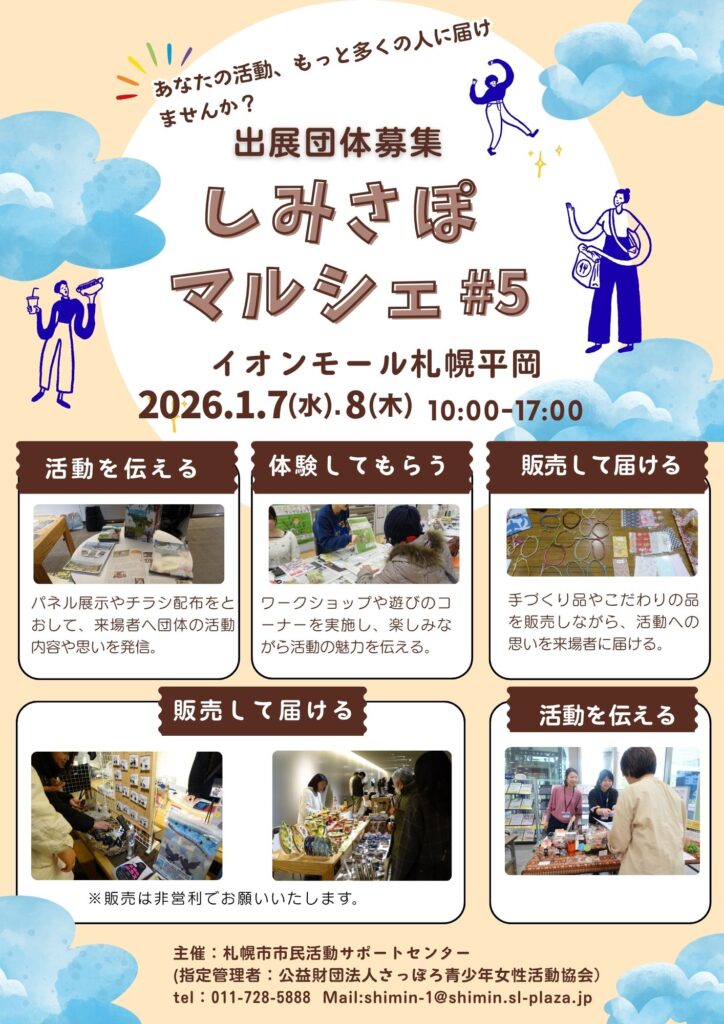 札幌市市民活動サポートセンターでは「しみさぽマルシェ」を定期的に開催しております。