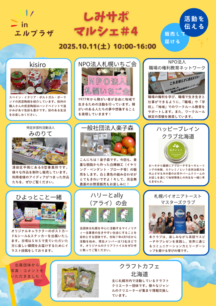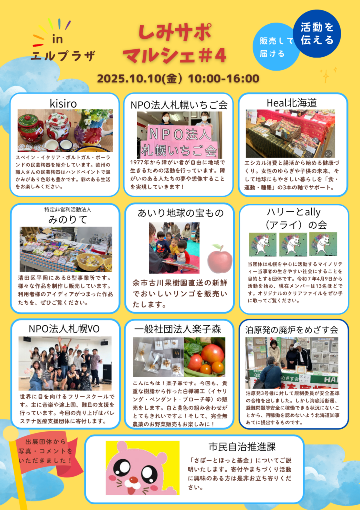札幌市市民活動サポートセンターでは『しみさぽマルシェ』を定期的に開催しております。