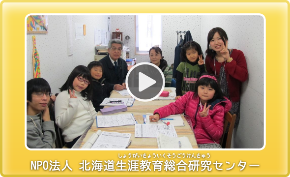 地域(ちいき)で暮(く)らす人、 特(とく)に社会的(てき) 弱者(じゃくしゃ)といわれる人たちに対(たい)し、生涯(しょうがい)学習(がくしゅう)全般(ぜんぱん)を通じて地域(ちいき)社会に参加(さんか)できるように手助(てだす)けをしている「NPO法人(ほうじん) 北海道生涯(しょうがい)教育(きょういく)総合(そうごう)研究(けんきゅう)センター」を取材(しゅざい)したよ! ぜひ動画(どうが)で取材(しゅざい)の様子(ようす)を見てね!