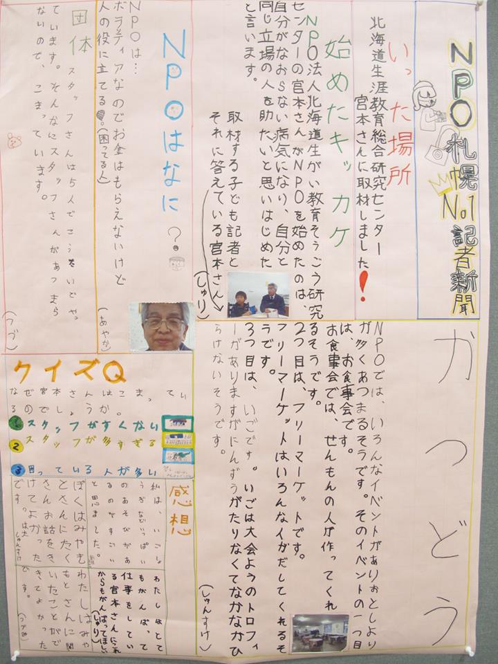 「NPO法人北海道生涯教育総合研究センター」さんを取材したグループは縦向きのかべ新聞を作ったよ!
