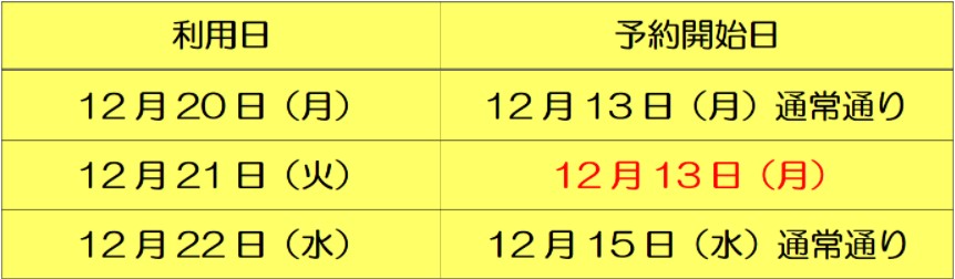 休館に伴う活動支援施設の相互利用予約開始日は以下の通り一部変更になります。