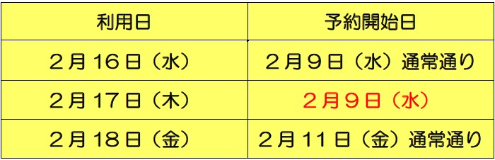 休館に伴う活動支援施設の相互利用予約開始日は以下の通り一部変更になります。