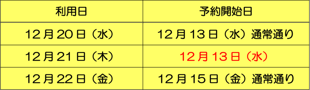 休館に伴う活動支援施設の相互利用予約開始日は以下の通り一部変更になります。