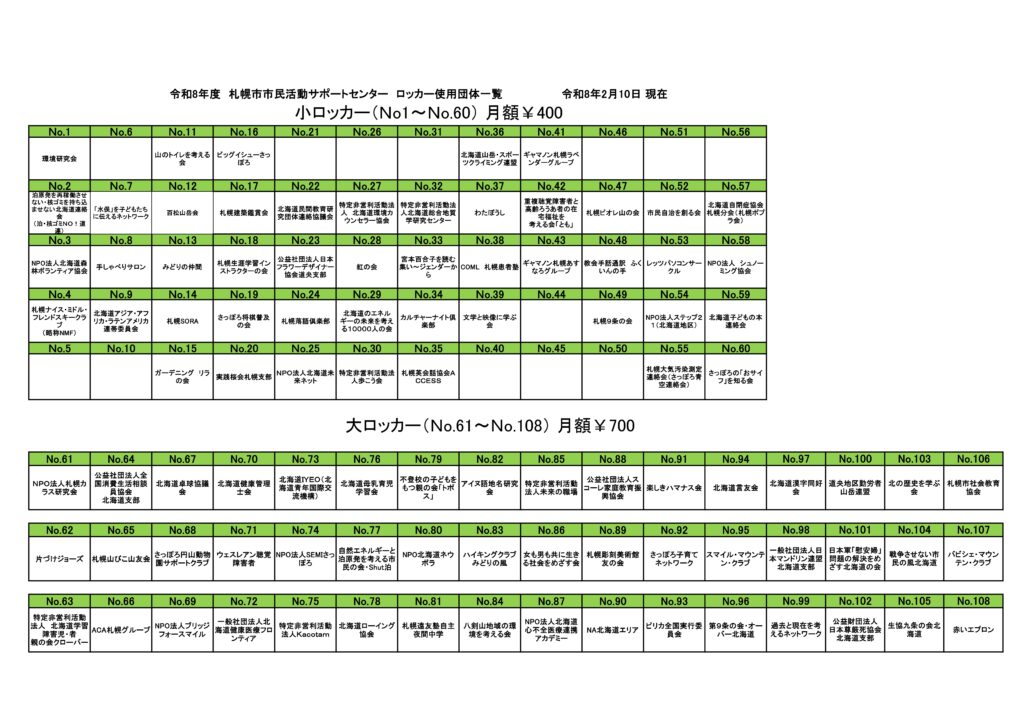 登録団体の皆さまを対象にお貸出している有料ロッカーにつきまして、抽選の結果